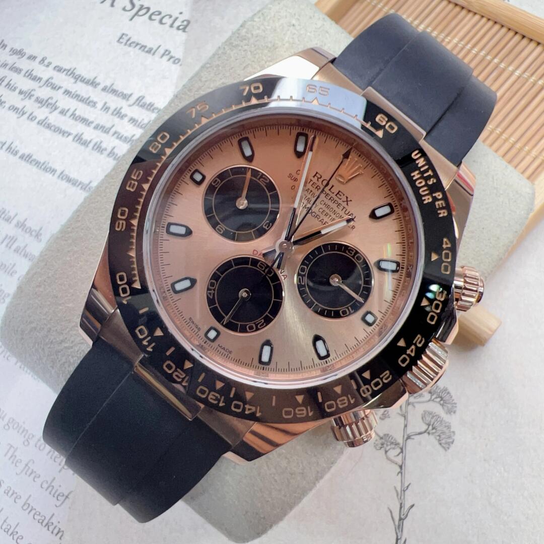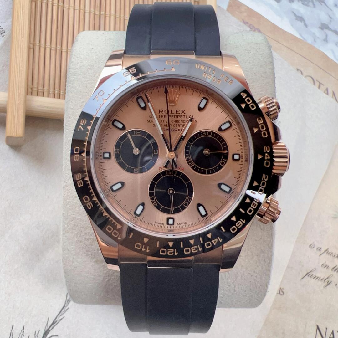 The Daytona’s chronograph feature functions are activated by pushers that screw down like the winding crown when they are not in use, guaranteeing waterproofness to 100 metres. One press to start, stop or reset the chronograph produces a crisp, clear click that was perfected using the most advanced technology. watchmakers also perfected the mechanism to suit the ideal finger pressure on the pushers, and engineered it to provide an instantaneous and accurate start to the timing without sacrificing reliability.
