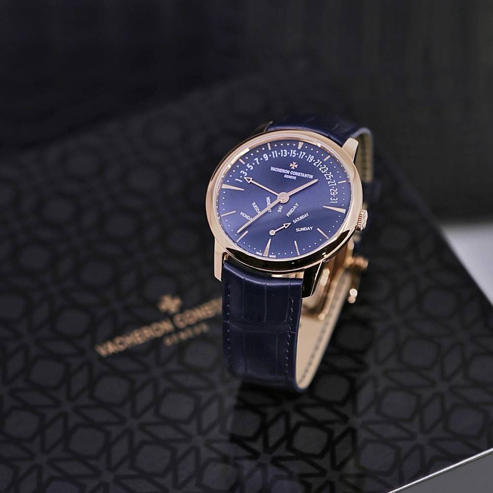Unworn Vacheron Constantin Patrimony Retrograde Day-Date 4000U/000R-B516, 42.50 mm. The watch has Blue Dial. The Case is rose gold, Caliber # 2460 R31R7/2 w/ 27 Jewels, 40 hours power reserve. The Bracelet is Mississippiensis alligator with Deployant buckle. The Water-resistant is up to 30 m. The Watch comes complete with Vacheron Constantin Papers & Box. Covered with Vacheron Constantin 2-Year Warranty.